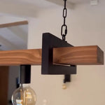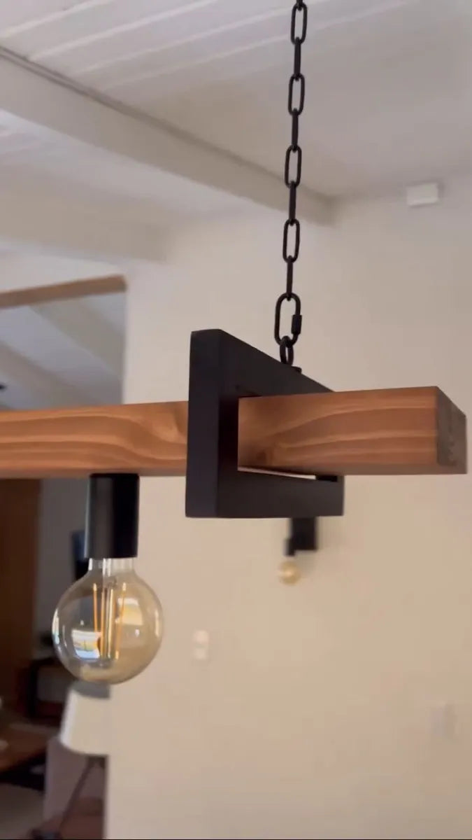 Lustre rústico estilo industrial, produzido em madeira maciça e aço carbono com pintura eletrostática. Possui excelente acabamento, unindo o rústico ao sofisticado, sendo indicado para iluminar e decorar ambientes internos e áreas externas cobertas. Não acompanha lâmpadas.